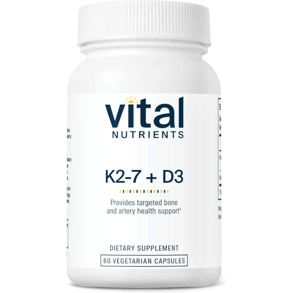 Vital Nutrients Vitamin D3 + K2-7 | Vitamin D & Vitamin K Vegan Supplement for Men & Women | Supports Heart Health, Strong Bone Health & Blood Flow* | Gluten, Dairy and Soy Free | 60 Capsules